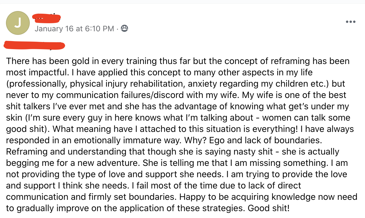 This means men in your same situation will surround you. All focused on the SAME goal to become an Empowered Man!